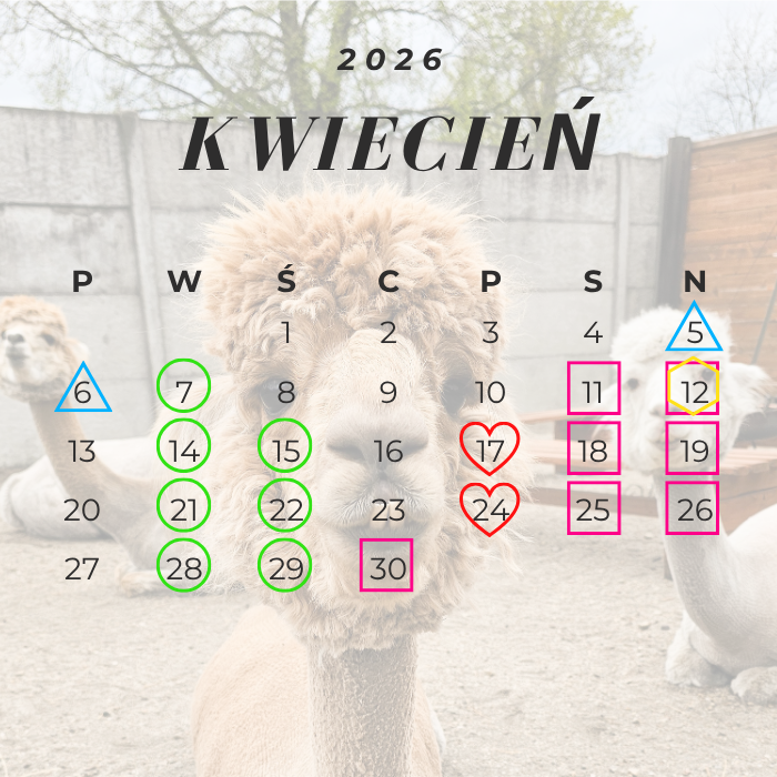 Tu zbieramy wszystkie bieżące informacje: wolne terminy spacerów z alpakami, najbliższe wydarzenia, urodziny, wycieczki oraz ważne komunikaty organizacyjne.