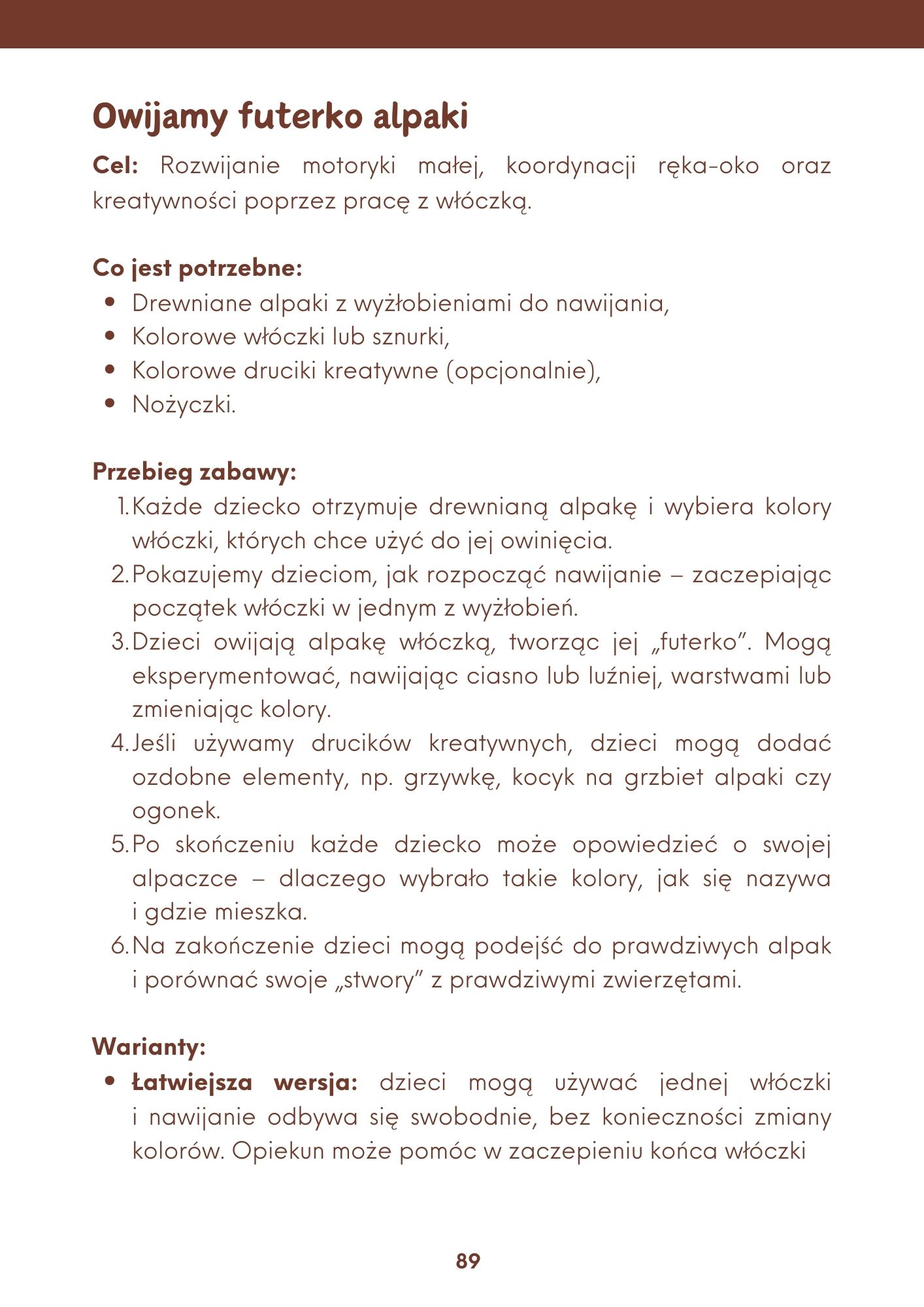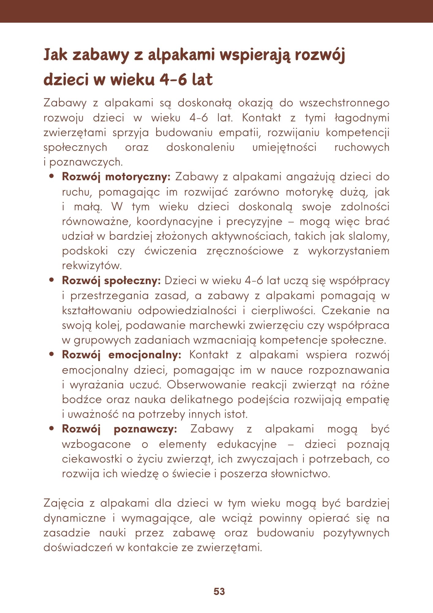 W tym ponad 50 scenariuszy zajęć – gotowe pomysły na zajęcia z alpakami!